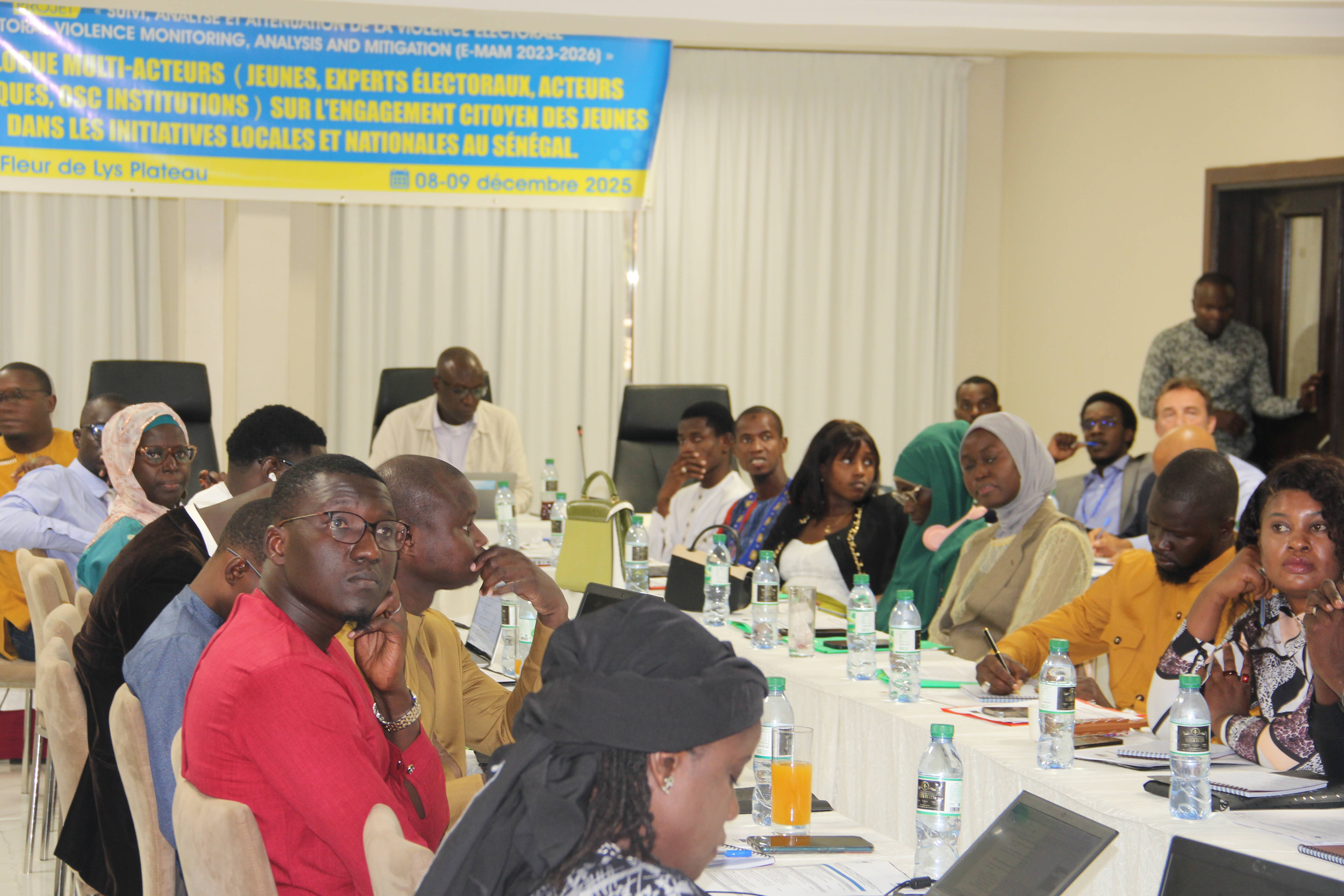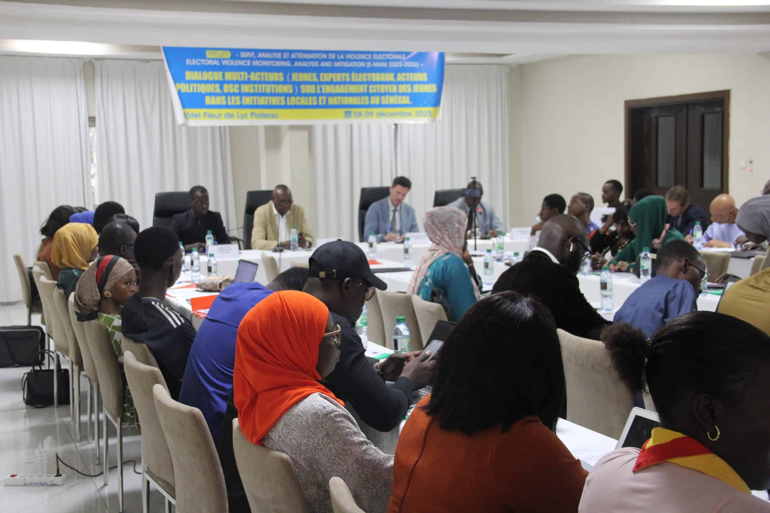 Le dialogue à réunit une cinquantaine de participants issus des organisations de jeunesse des régions identifiées comme sensibles ( (Bignona, Dakar, Kaffrine, Kaolack, Kédougou, Matam, Mbacké, Mbour, Saint-Louis, Thiès, Ziguinchor) ; des experts électoraux, des acteurs politiques, des institutions publiques, des organisations de la société civile, des partenaires financiers tels que l’Union Européenne.
